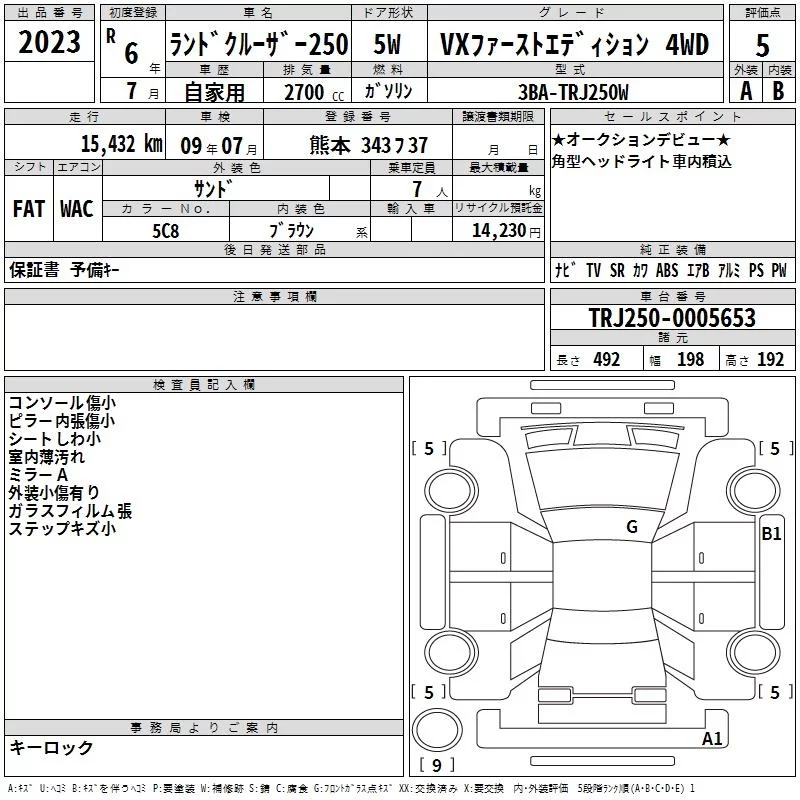 Toyota LAND CRUISER с аукциона Японии TAA Kyushu лот № 2023