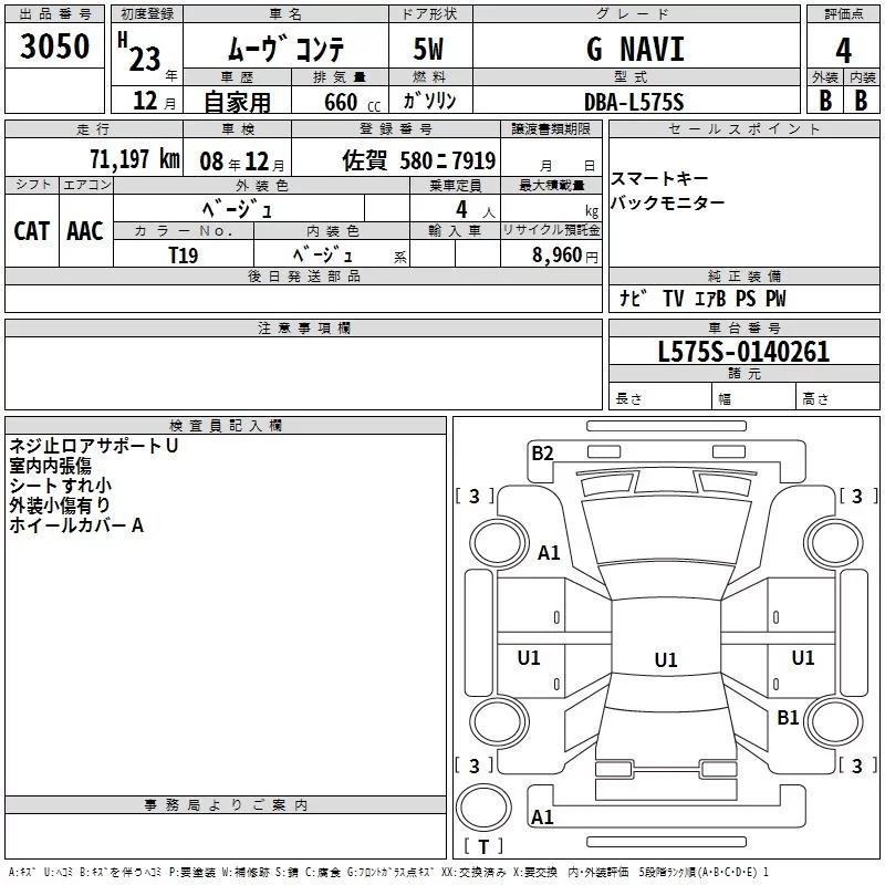Daihatsu MOVE CONTE с аукциона Японии TAA Kyushu лот № 3050