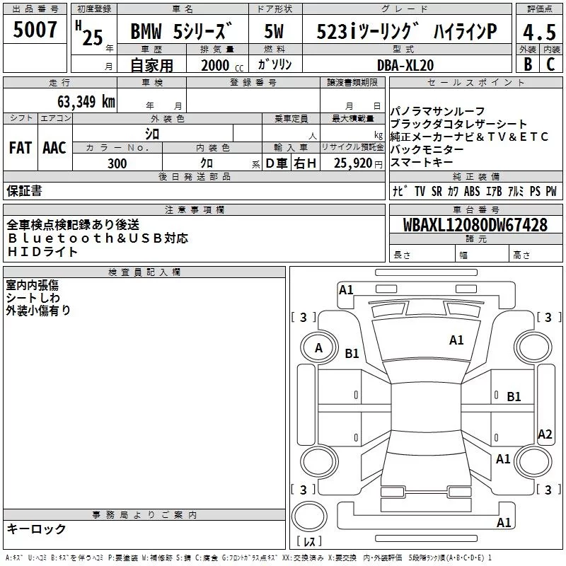 BMW 5-Series с аукциона Японии TAA Kyushu лот № 5007