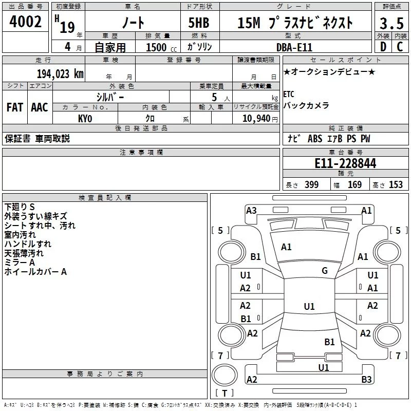 Nissan NOTE с аукциона Японии TAA Kyushu лот № 4002