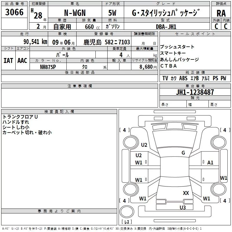 Honda N WGN с аукциона Японии TAA Kyushu лот № 3066