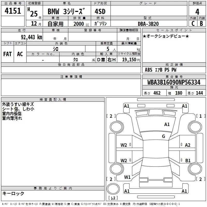 BMW 3-Series с аукциона Японии TAA Kyushu лот № 4151