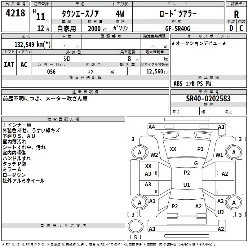 Toyota TOWN ACE NOAH с аукциона Японии TAA Kyushu лот № 4218