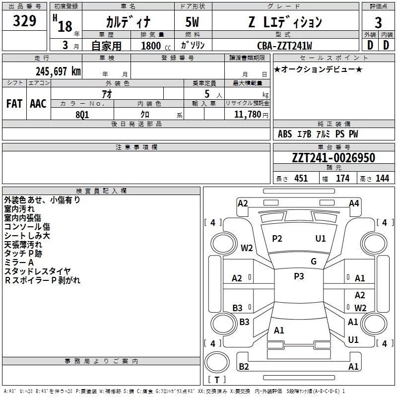 Toyota CALDINA с аукциона Японии TAA Kyushu лот № 329