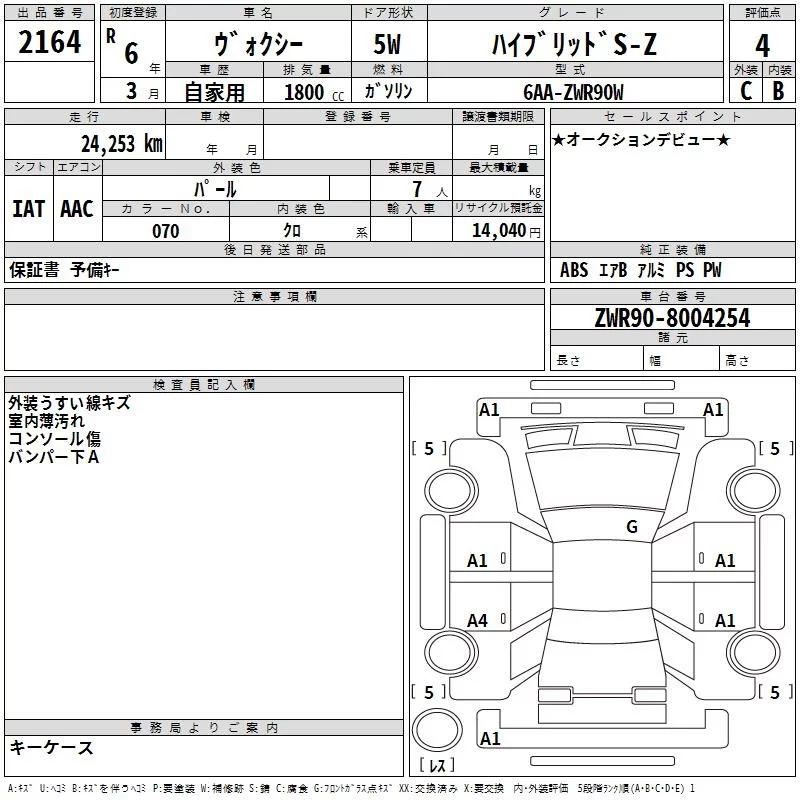 Toyota VOXY с аукциона Японии TAA Kyushu лот № 2164
