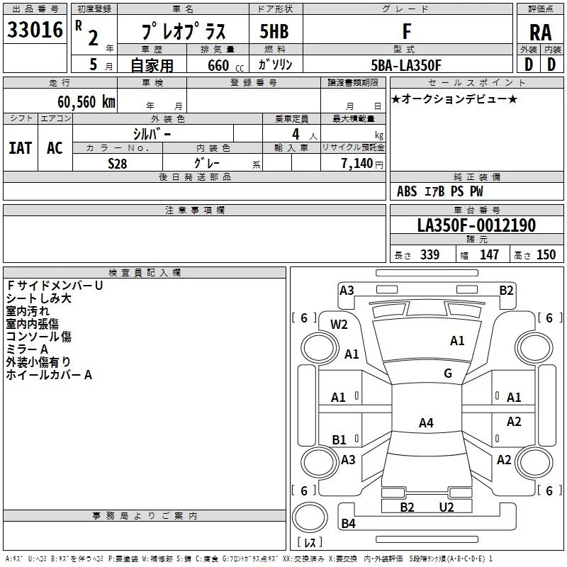Subaru PLEO PLUS с аукциона Японии TAA Kyushu лот № 33016