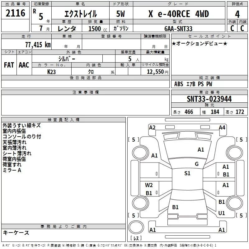 Nissan X-TRAIL с аукциона Японии TAA Kyushu лот № 2116
