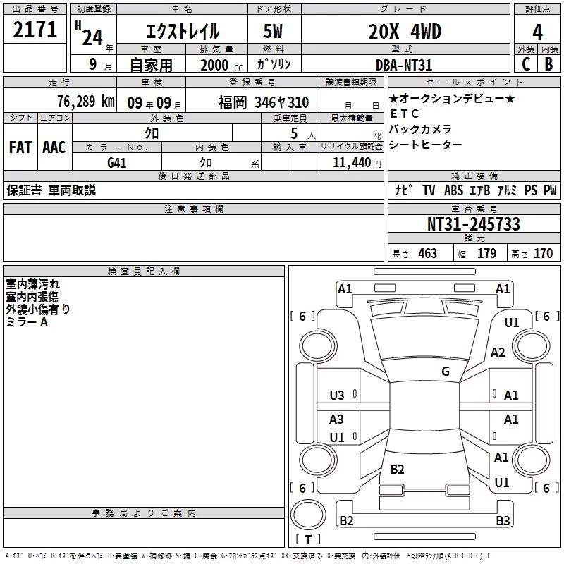 Nissan X-TRAIL с аукциона Японии TAA Kyushu лот № 2171