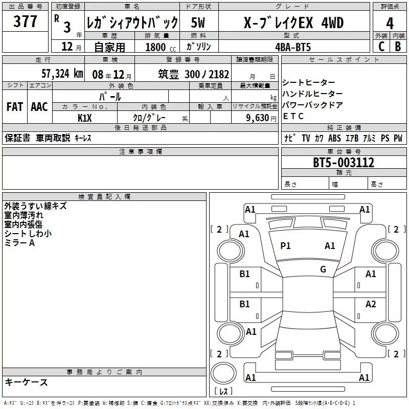 Subaru LEGACY OUTBACK с аукциона Японии TAA Kyushu лот № 377