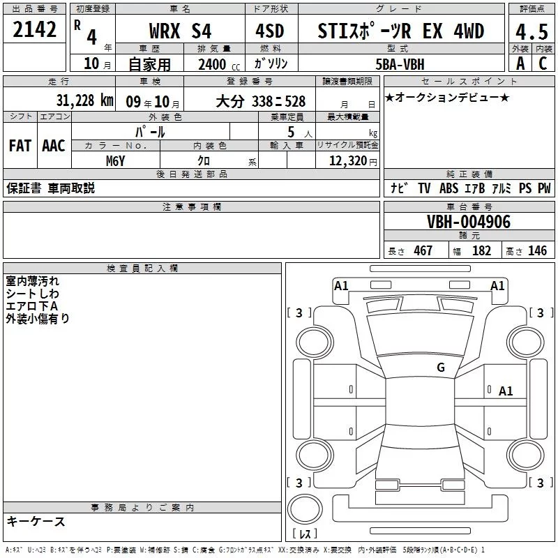 Subaru WRX с аукциона Японии TAA Kyushu лот № 2142