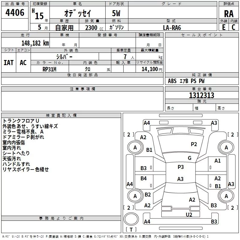 Honda ODYSSEY с аукциона Японии TAA Kyushu лот № 4406