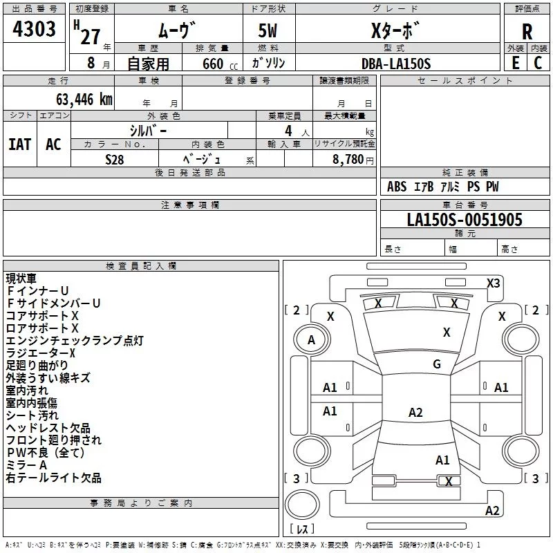 Daihatsu MOVE с аукциона Японии TAA Kyushu лот № 4303