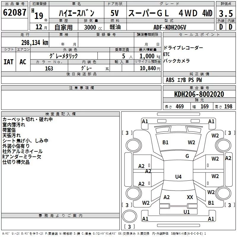 Toyota HIACE VAN с аукциона Японии TAA Kyushu лот № 62087