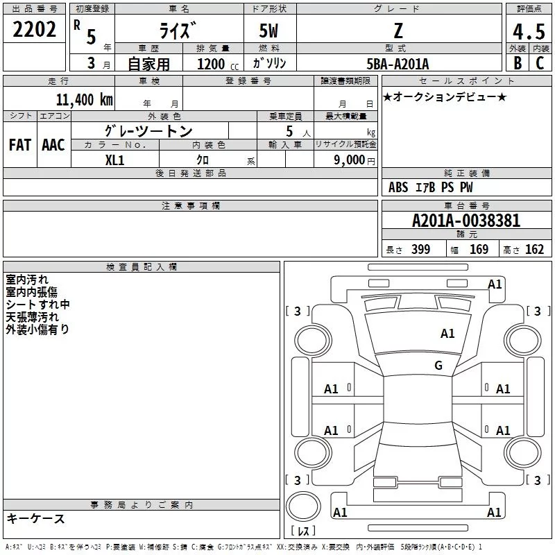 Toyota RAIZE с аукциона Японии TAA Kyushu лот № 2202