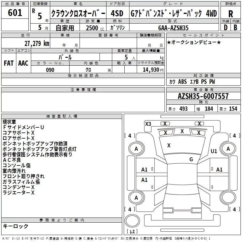 Toyota CROWN CROSSOVER с аукциона Японии TAA Kyushu лот № 601