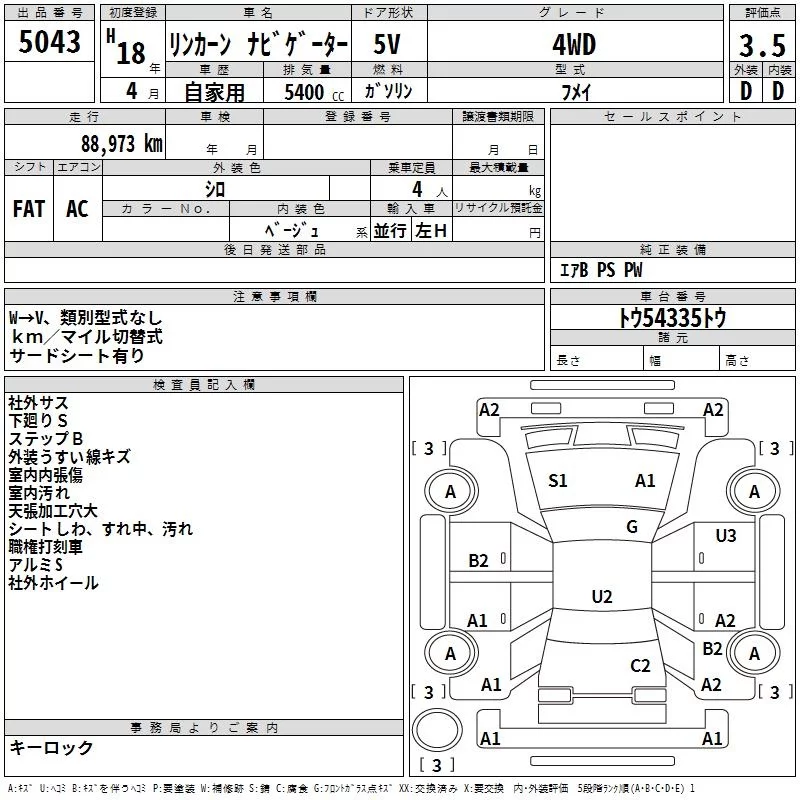 Ford LINCOLN NAVIGATOR с аукциона Японии TAA Kyushu лот № 5043