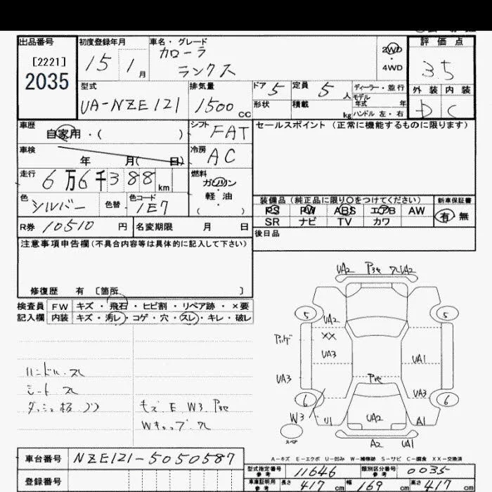 Toyota COROLLA RUNX с аукциона Японии JU Saitama лот № 2035