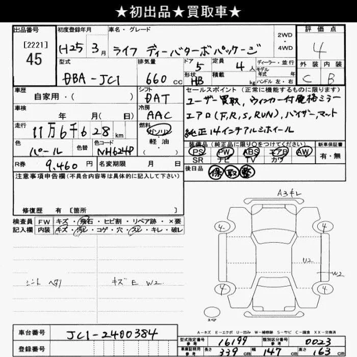 Honda LIFE с аукциона Японии JU Saitama лот № 45