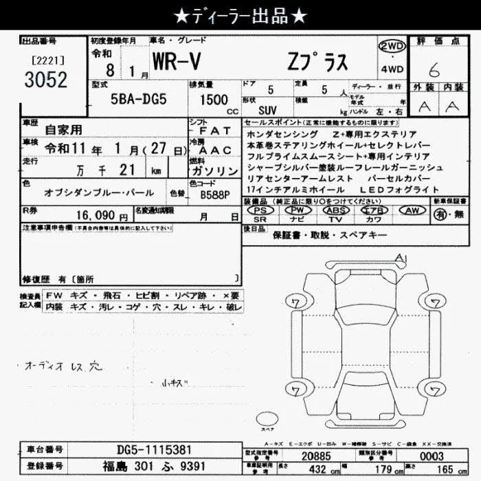 Honda WR-V с аукциона Японии JU Saitama лот № 3052