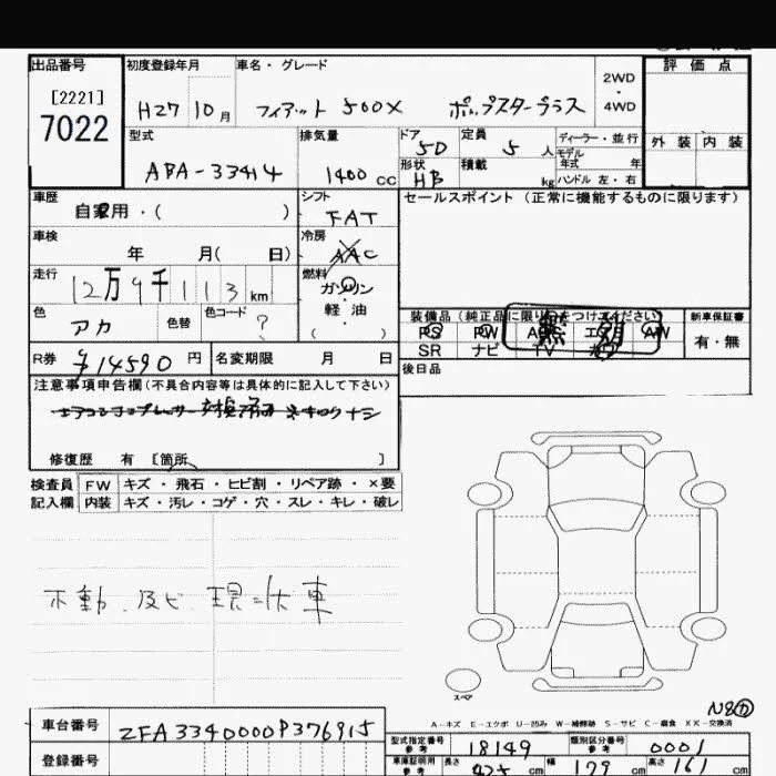 Fiat 500X с аукциона Японии JU Saitama лот № 7022