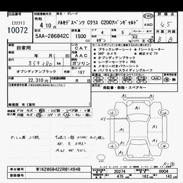 Mercedes-Benz C CLASS с аукциона Японии JU Saitama лот № 10072