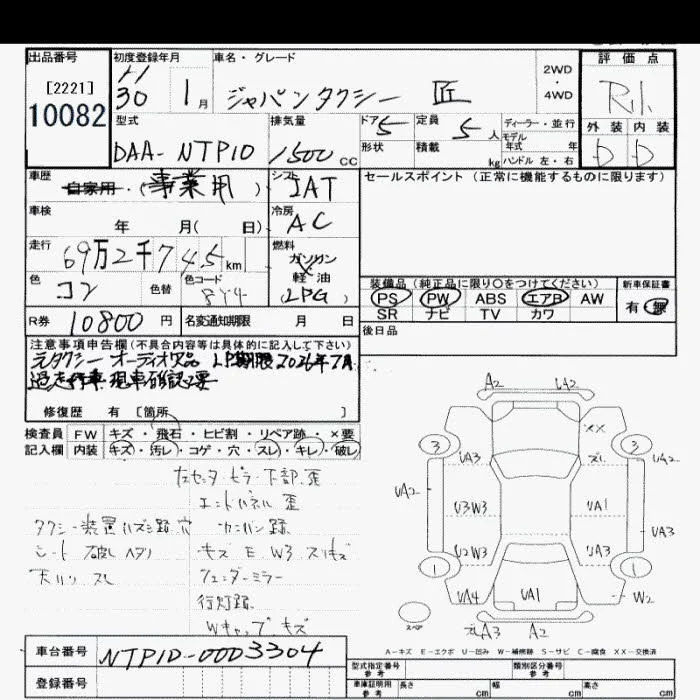 Toyota JPN TAXI с аукциона Японии JU Saitama лот № 10082
