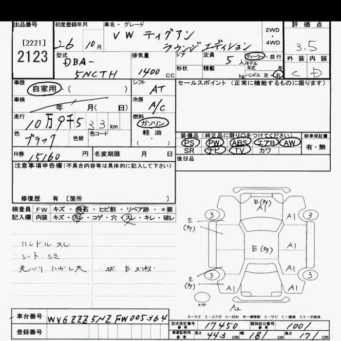 Volkswagen TIGUAN с аукциона Японии JU Saitama лот № 2123
