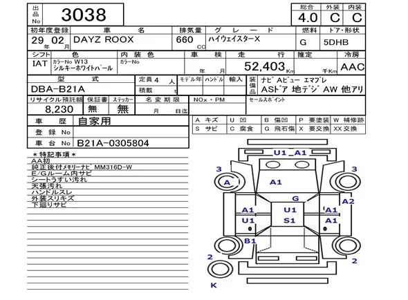 Nissan DAYZ ROOX с аукциона Японии NAA Fukuoka лот № 3038