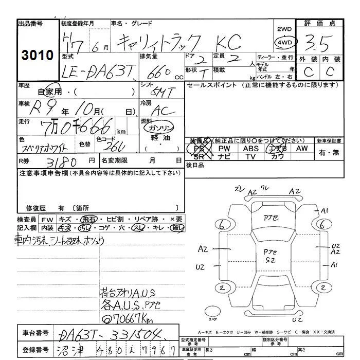 Suzuki CARRY TRUCK с аукциона Японии JU Shizuoka лот № 3010