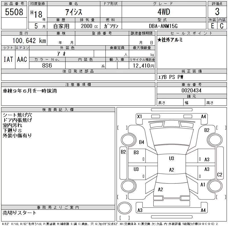 Toyota ISIS с аукциона Японии CAA Tohoku лот № 5508