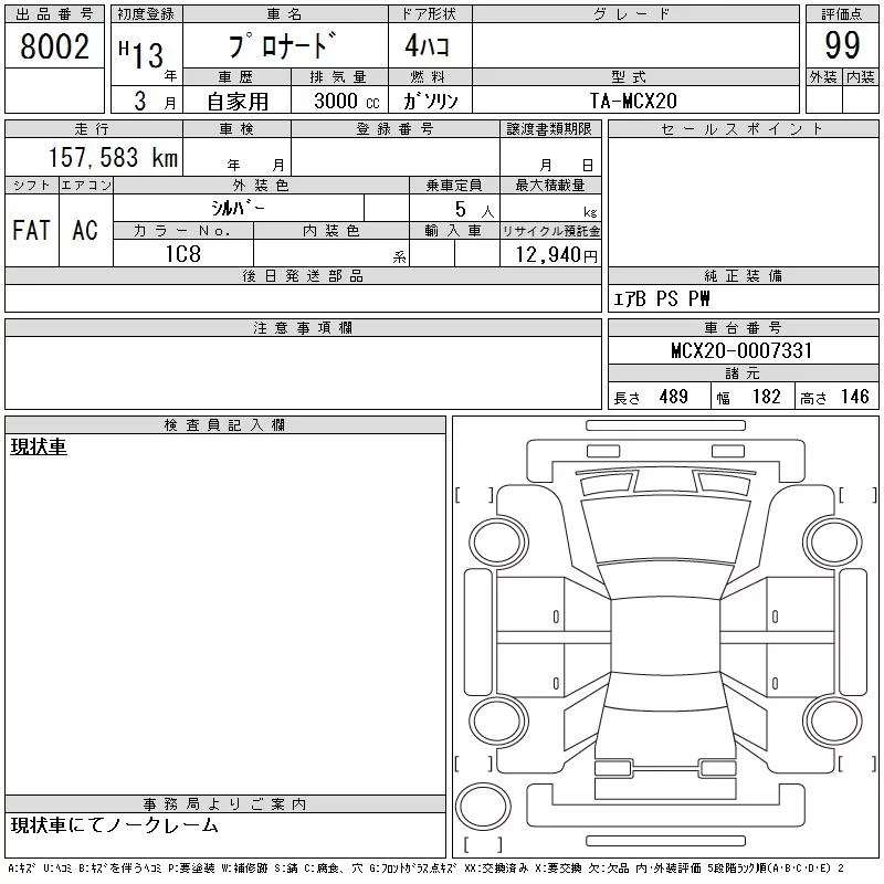 Toyota PRONARD с аукциона Японии CAA Tohoku лот № 8002
