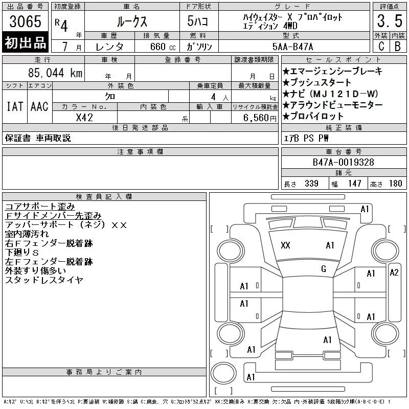 Nissan ROOX с аукциона Японии CAA Tohoku лот № 3065