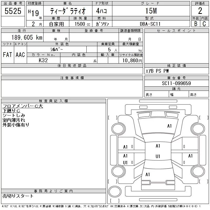 Nissan TIIDA LATIO с аукциона Японии CAA Tohoku лот № 5525