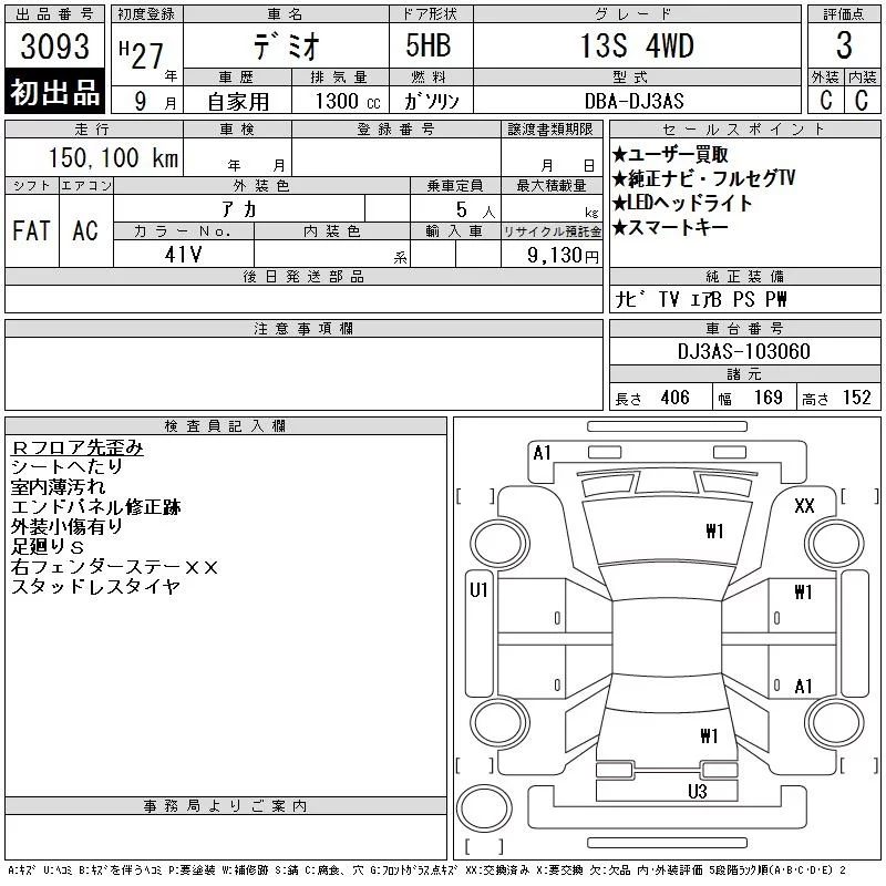 Mazda DEMIO с аукциона Японии CAA Tohoku лот № 3093
