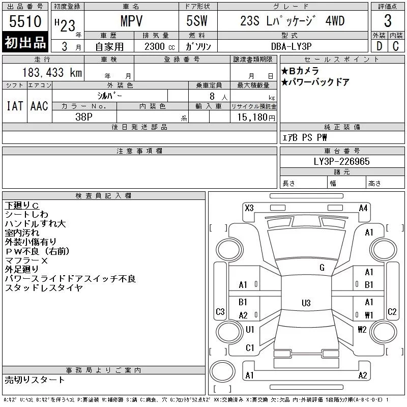 Mazda MPV с аукциона Японии CAA Tohoku лот № 5510