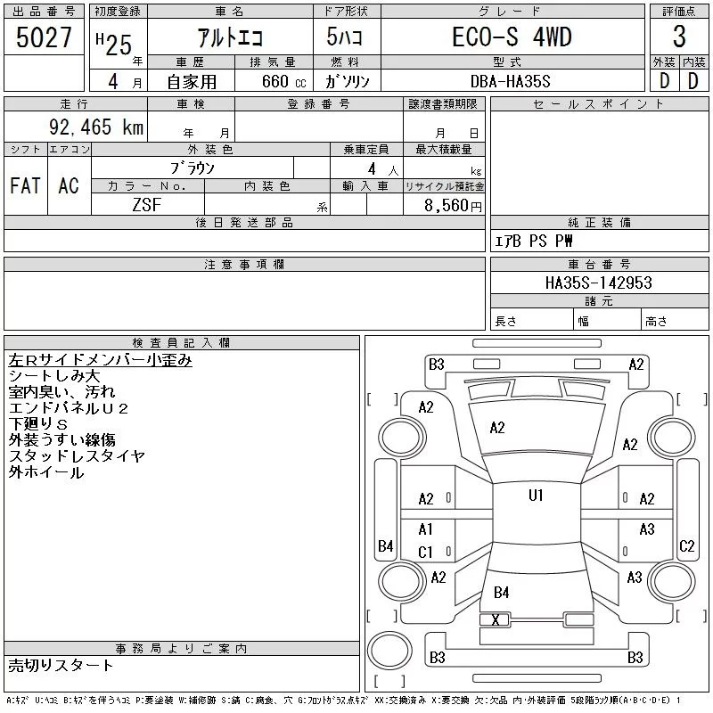 Suzuki ALTO ECO с аукциона Японии CAA Tohoku лот № 5027