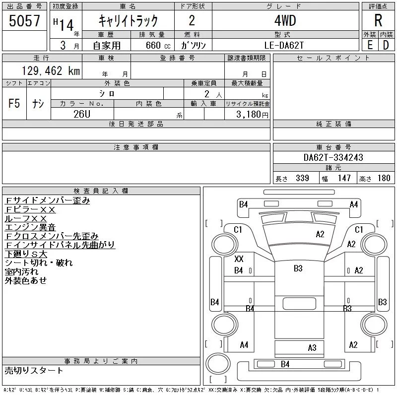 Suzuki CARRY TRUCK с аукциона Японии CAA Tohoku лот № 5057