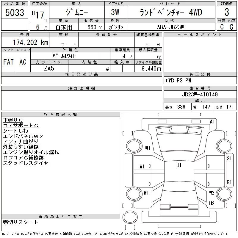 Suzuki JIMNY с аукциона Японии CAA Tohoku лот № 5033