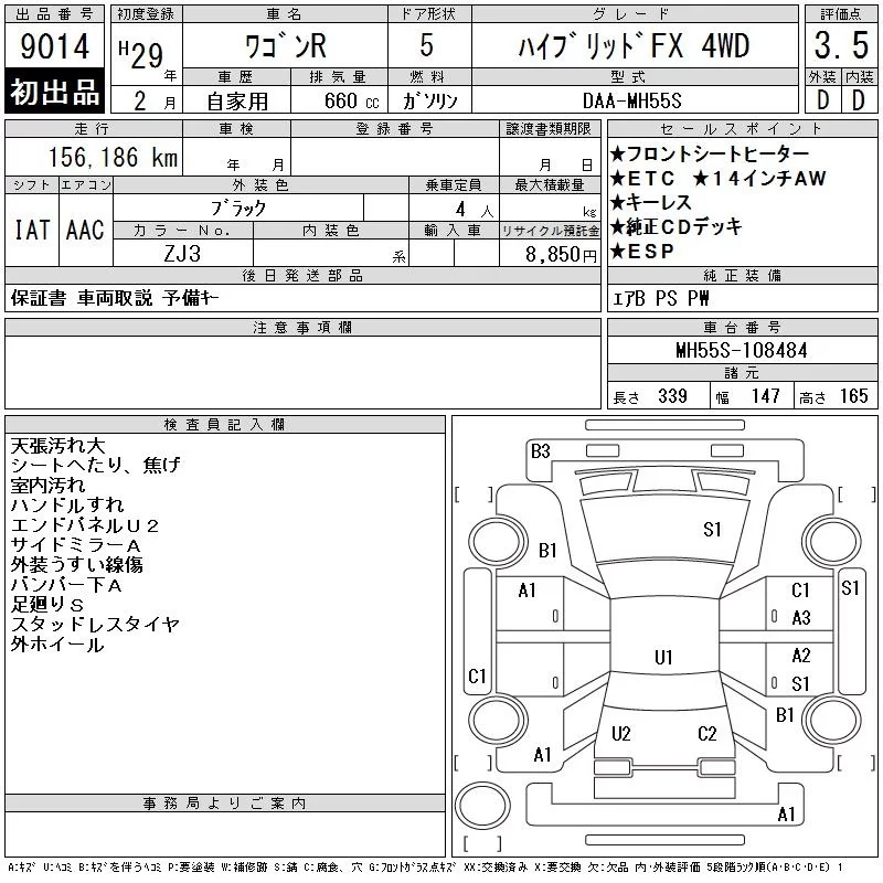 Suzuki WAGON R с аукциона Японии CAA Tohoku лот № 9014