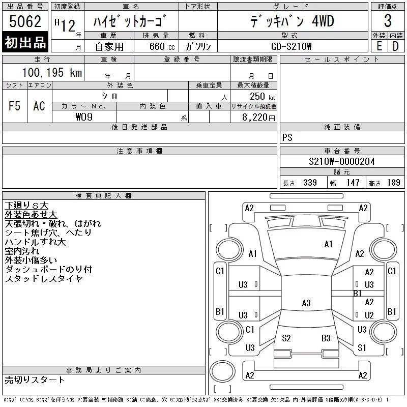 Daihatsu HIJET VAN с аукциона Японии CAA Tohoku лот № 5062