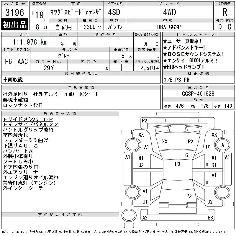 Mazda ATENZA SEDAN с аукциона Японии CAA Tohoku лот № 3196