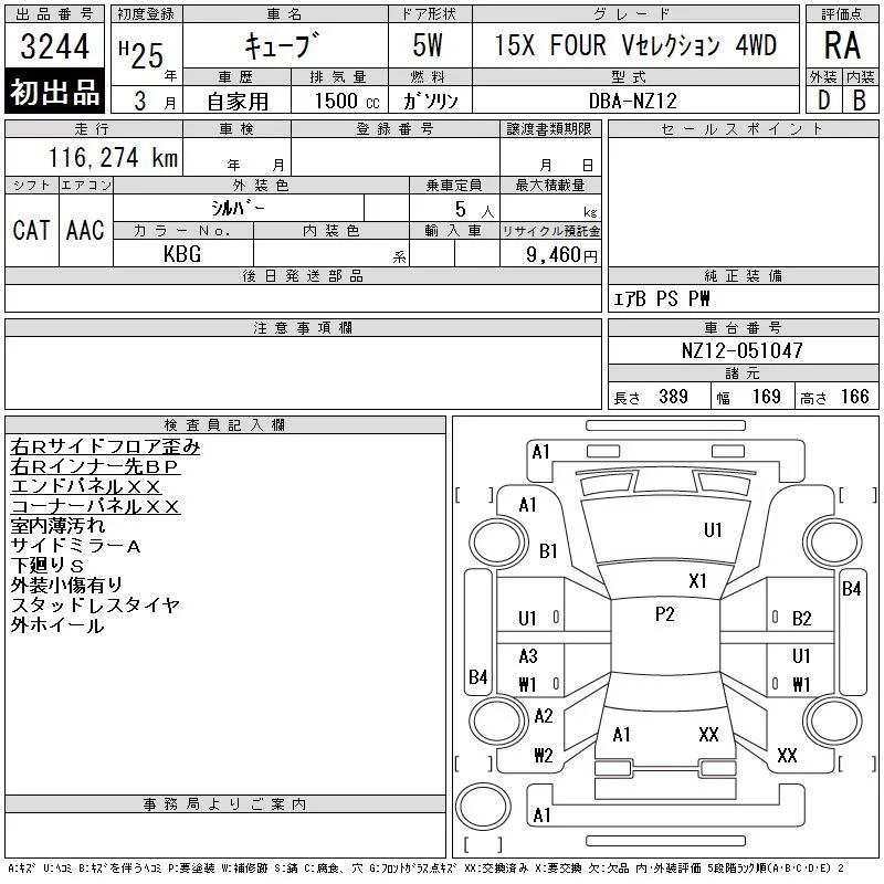Nissan CUBE с аукциона Японии CAA Tohoku лот № 3244