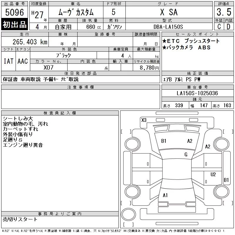 Daihatsu MOVE с аукциона Японии CAA Tohoku лот № 5096