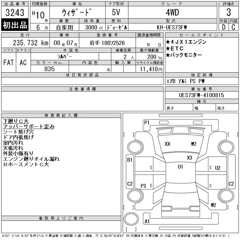 Isuzu WIZARD с аукциона Японии CAA Tohoku лот № 3243