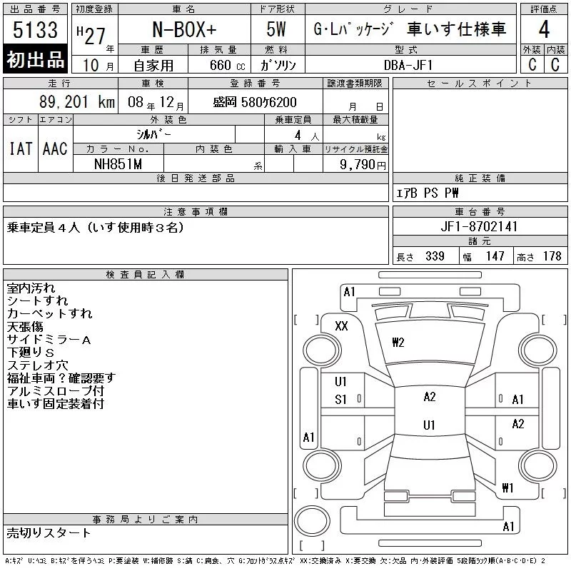Honda N BOX PLUS с аукциона Японии CAA Tohoku лот № 5133