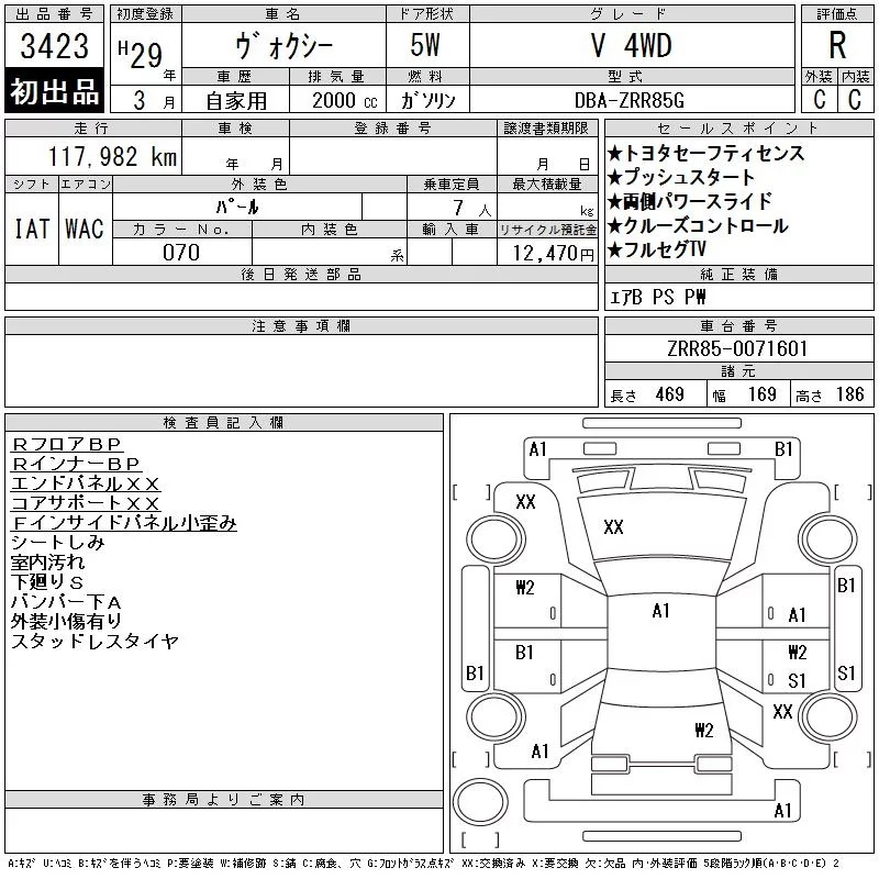 Toyota VOXY с аукциона Японии CAA Tohoku лот № 3423