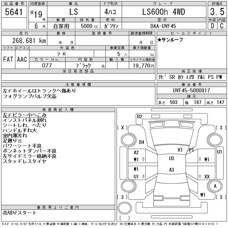 Lexus LS с аукциона Японии CAA Tohoku лот № 5641