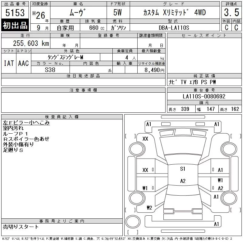 Daihatsu MOVE с аукциона Японии CAA Tohoku лот № 5153