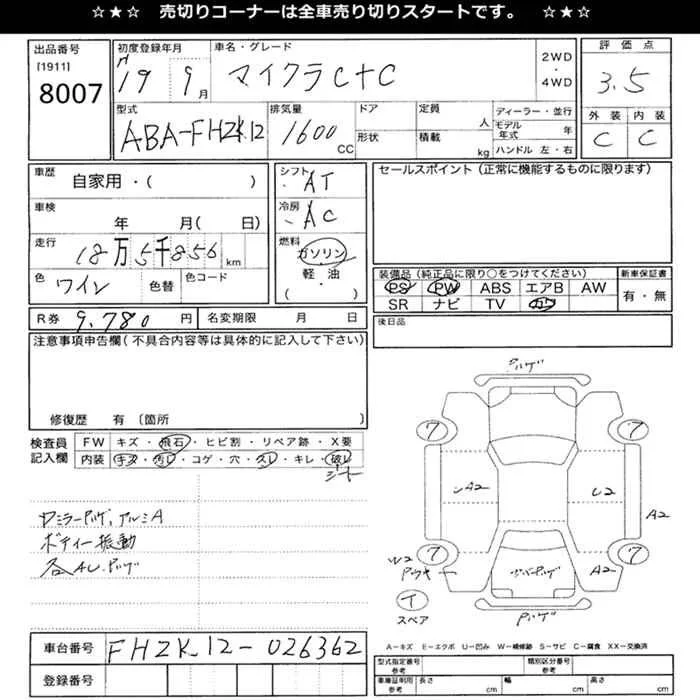Nissan MICRA с аукциона Японии JU Mie лот № 8007