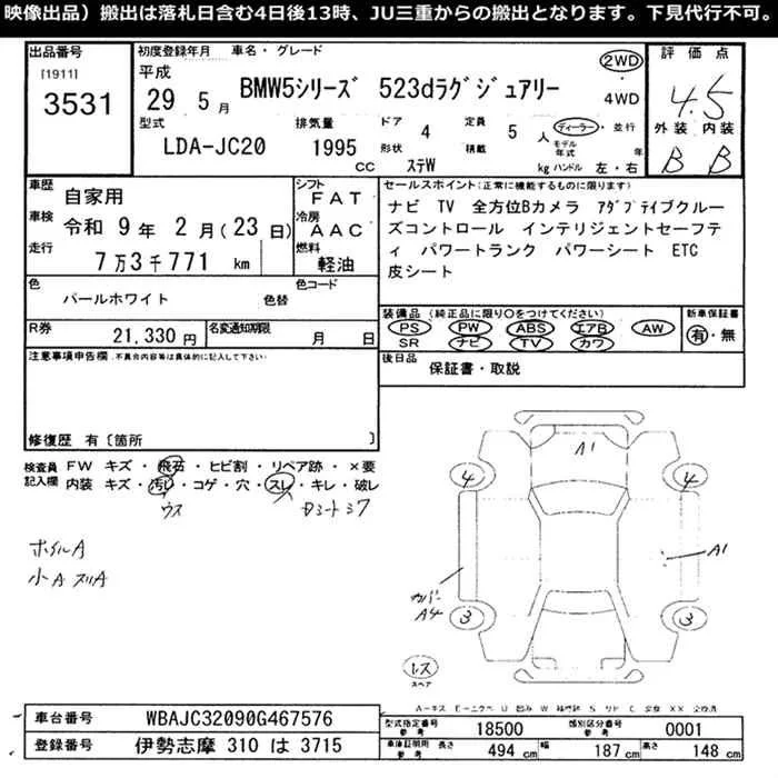 BMW 5-Series с аукциона Японии JU Mie лот № 3531